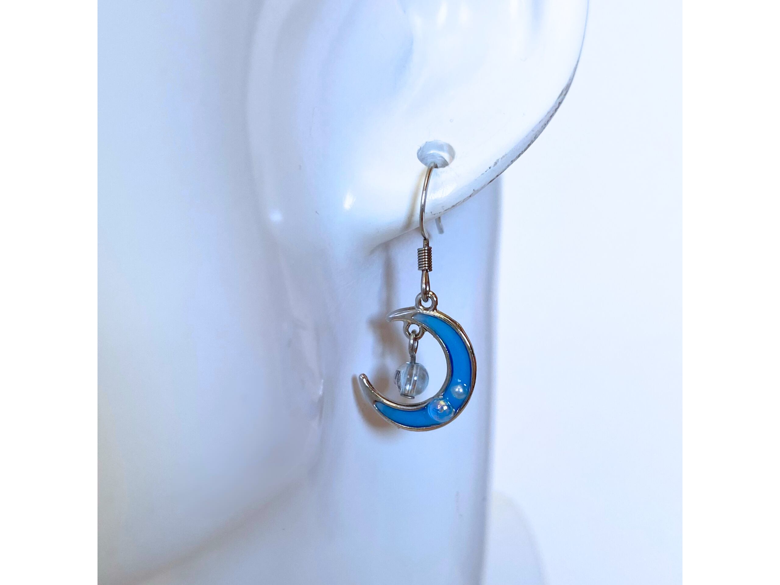 今回の月ピアスは、シャボン玉が飛んでいる月にアクアマリンを合わせました。快晴の空の下、シャボン玉にアクアマリンが紛れ遊んでいます。