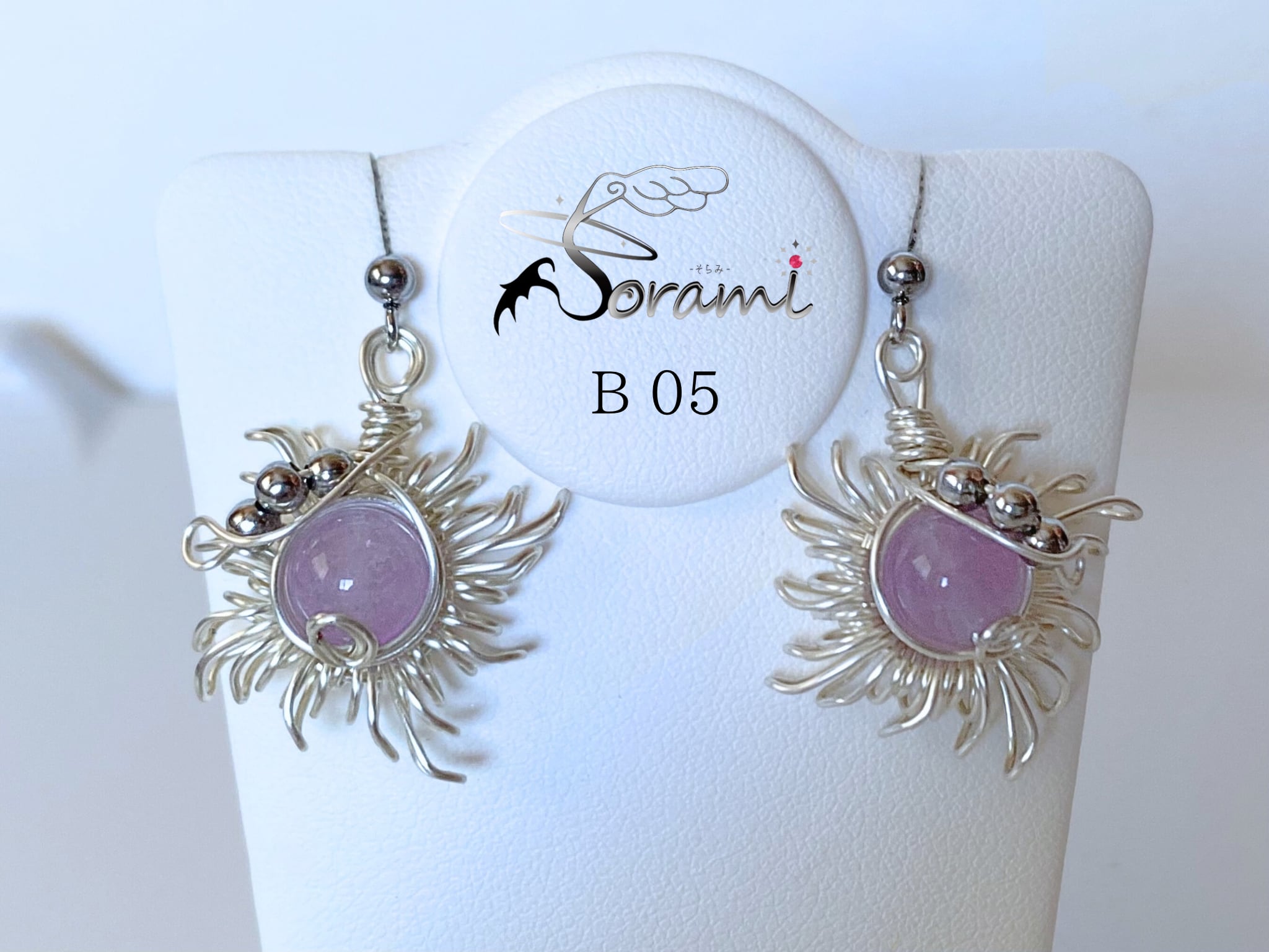 B05 ラベンダーアメシスト 太陽ピアス/イヤリング